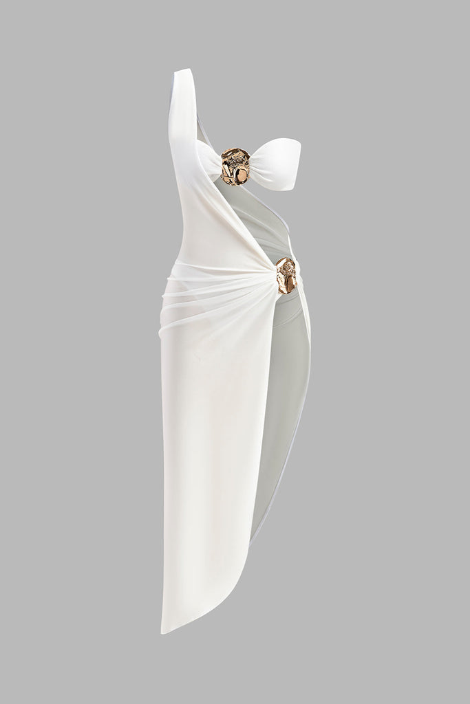 hazel white Deep V-neck halterneck layer ruffle trim maxi dress