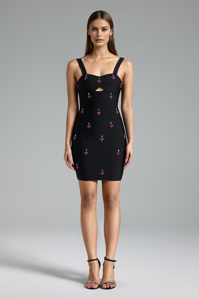 RUBIDES DIAMOND BANDAGE MIDI DRESS IN BLACK