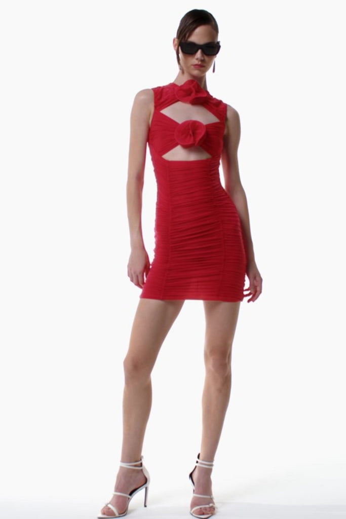 cynthia 3D Flower v-neck Sleeveless bodycon mini Dress in pink