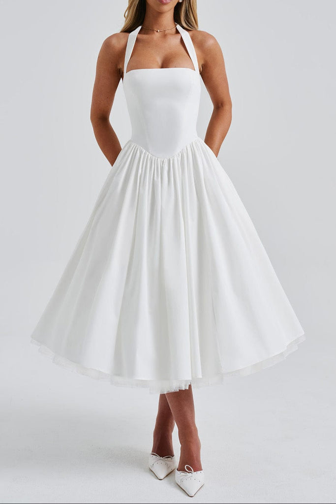 Datherine Floral Appliqué Halter Maxi Bandage Dress - Red
