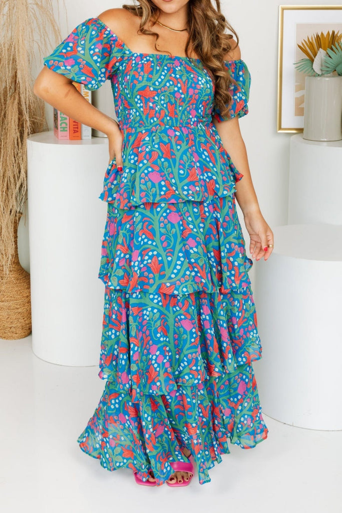 Fanci Floral Applique High Neck Maxi-Mint Blue