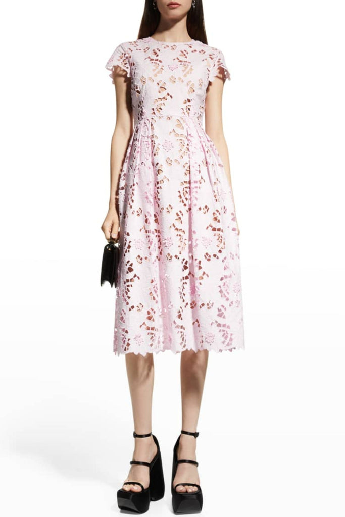 FLORAL LACE EMBROIDERED MIDI DRESS IN PINK