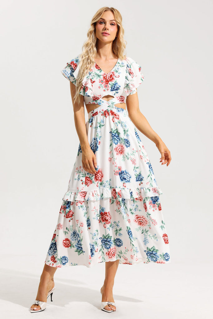 Floral Agaric Lace V-Neck Cut-Out Midi Dress