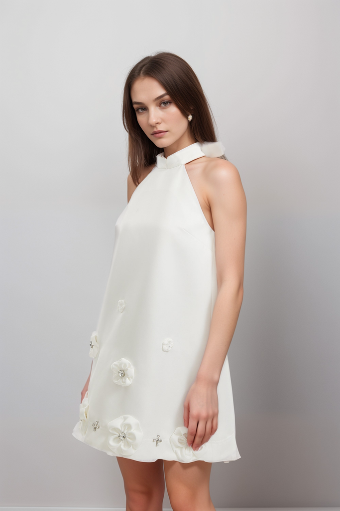 Aubrie faux-flower embellished dress – Wildnora.com