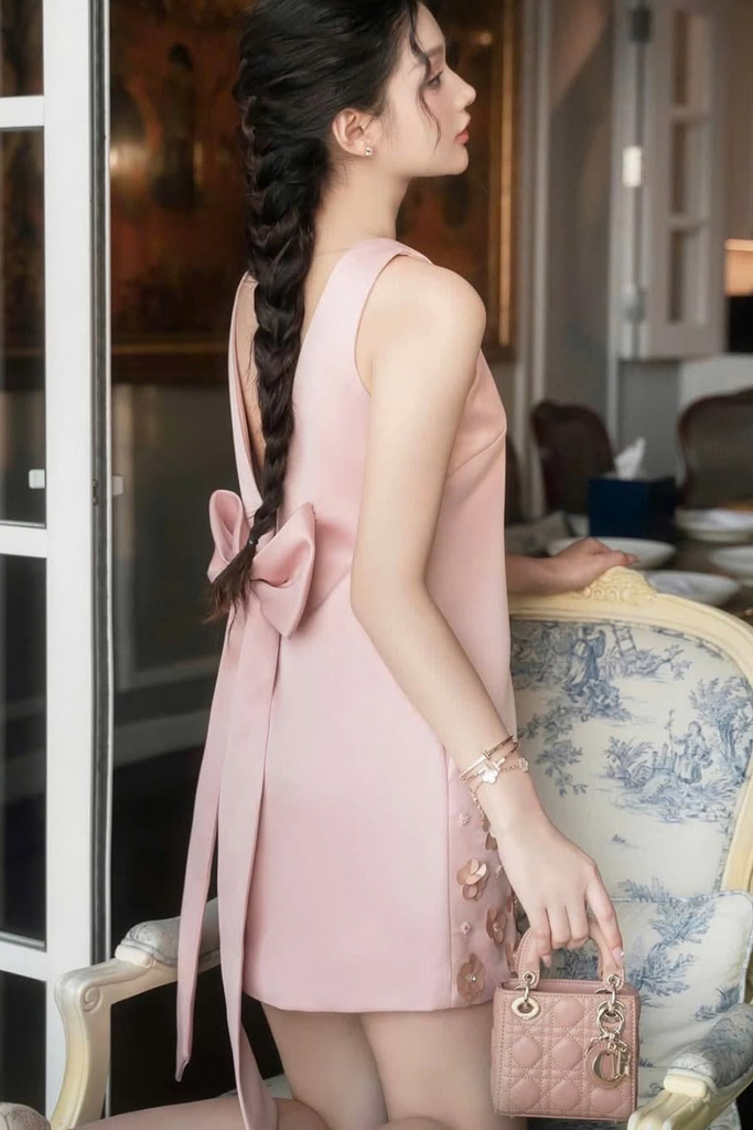 This flower sleeveless v-neck midi dress in pink is the perfect addition to your wardrobe for any occasion. Its floral design and v-neckline add a touch of femininity, while the midi length provides a classic and elegant look. Made with high-quality materials, this dress offers both comfort and style.