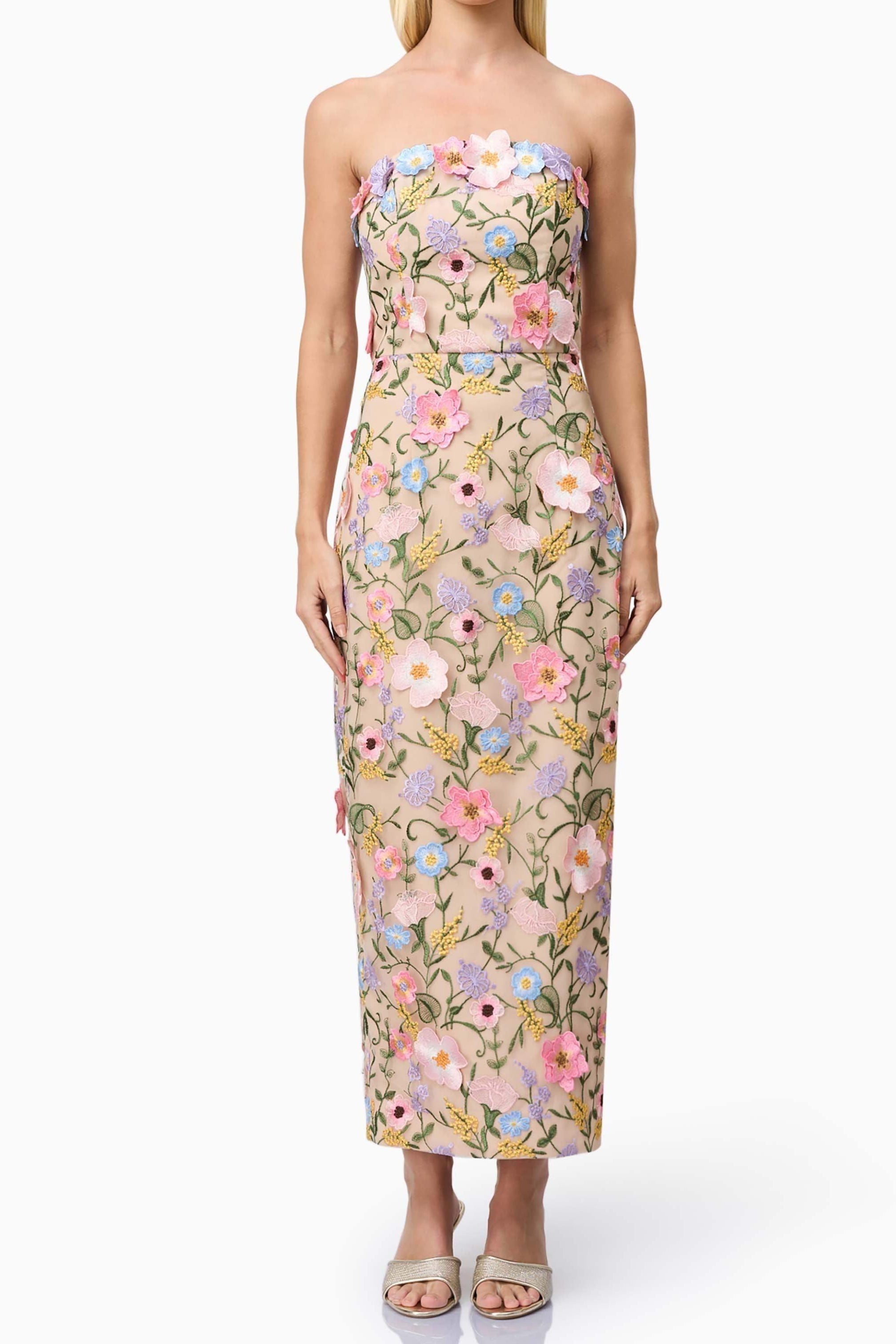 Elevate your wardrobe with the Helena Strapless Midi Dress in Floral Apricot. This expertly crafted dress features a flattering strapless neckline and a midi length that balances elegance with modern style. The delicate floral apricot pattern adds a soft, feminine touch, perfect for both daytime events and evening occasions. Designed for comfort and sophistication, this dress offers a seamless fit that enhances your silhouette while allowing ease of movement. Ideal for those seeking a refined yet effortless look.