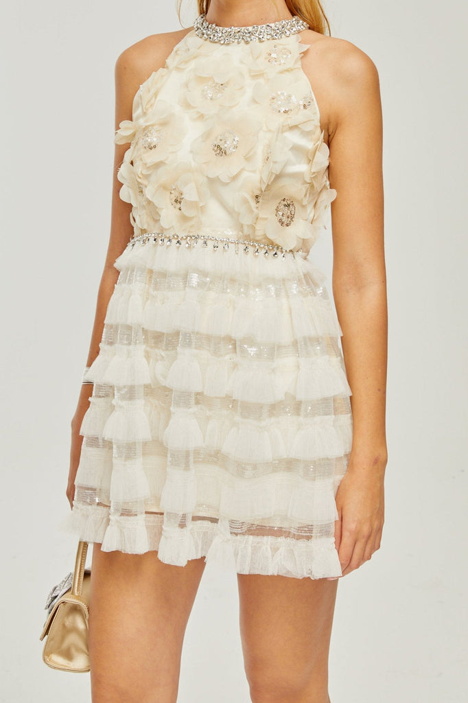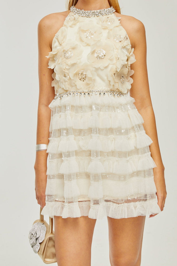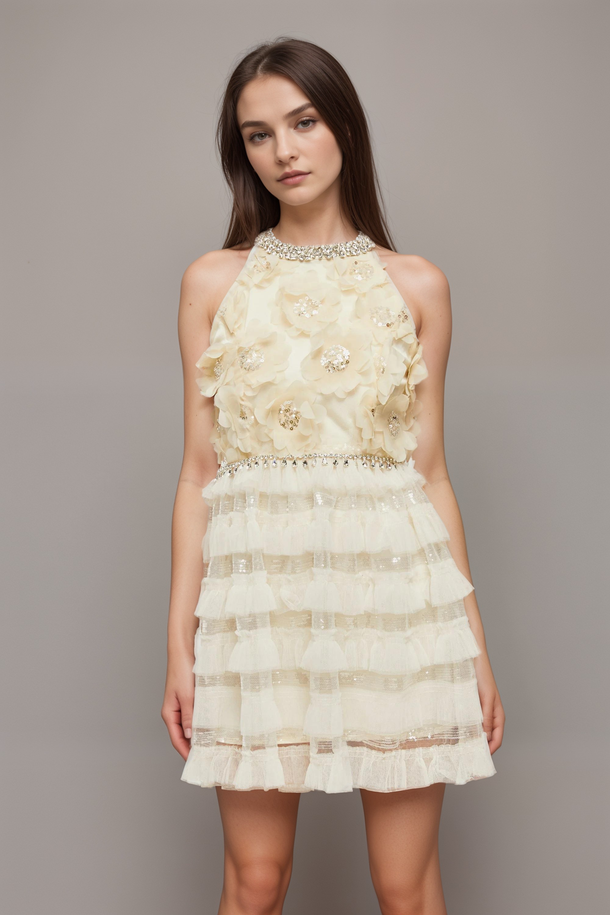 Make a statement in this Lavinia embellished floral tiered dress. The intricate detailing and layered design add a touch of elegance, while the floral pattern adds a touch of whimsy. Perfect for any special occasion, this dress will make you stand out from the crowd.