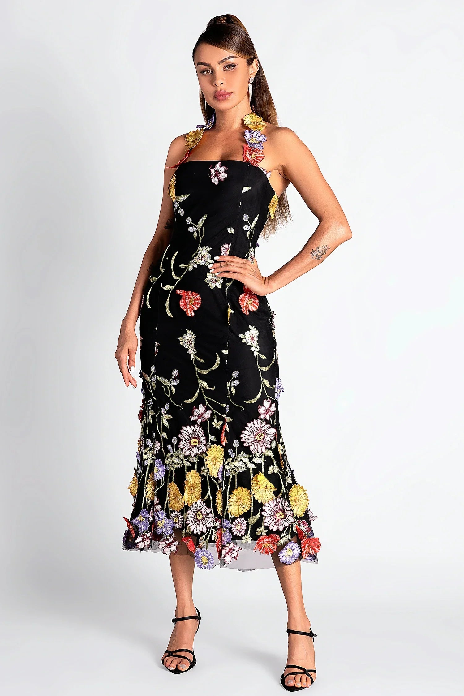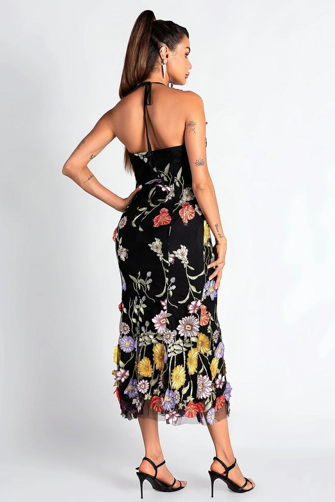 Unleash your inner elegance with our Halter Embroidered Floral Dress. This enchanting piece showcases delicate floral embroidery that brings a touch of nature’s beauty to your ensemble. The halter neckline beautifully frames your shoulders and creates an effortlessly chic silhouette. Whether you're attending a summer wedding, enjoying a romantic dinner, or celebrating a special occasion, this dress is your perfect companion for making unforgettable memories.