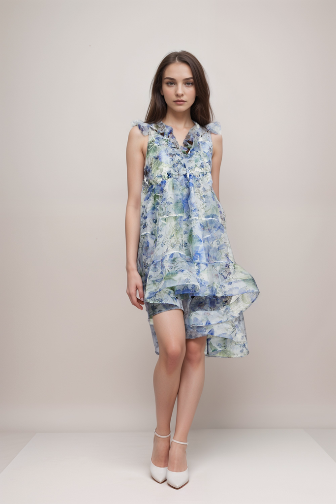 BLUE FLOWER STRAPLESS BIND MINI DRESS