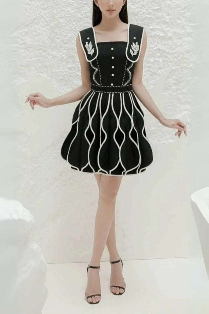 FAWN FLOWER EMBROIDERY BUTTON MINI DRESS IN PINK