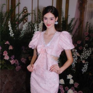 Elevate your style with our Pearl Diamond Decorated Bubble Sleeve Jacquard Embroidery Dress. The luxurious jacquard fabric is adorned with delicate pearl and diamond embellishments, adding a touch of glamour to the classic bubble sleeve design. Perfect for special occasions, this dress is both sophisticated and chic.
