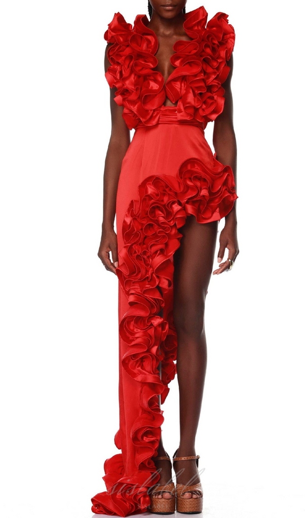 STRAPY HEM MINI DRESS IN RED