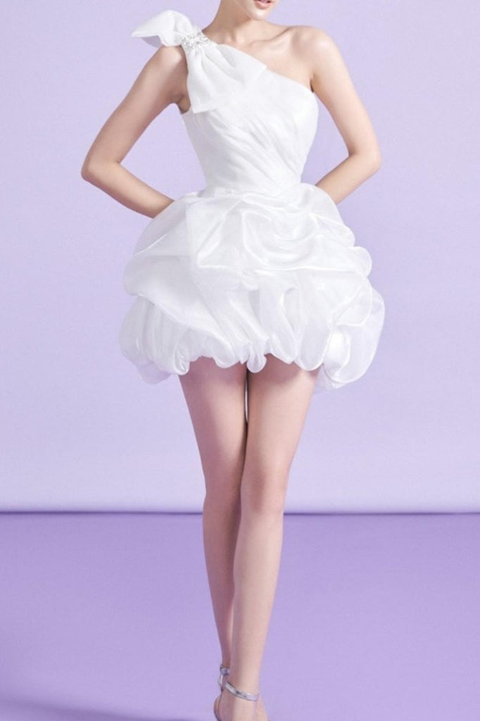 WHITE ONE SHOULDER BOWKNOT MINI DRESS