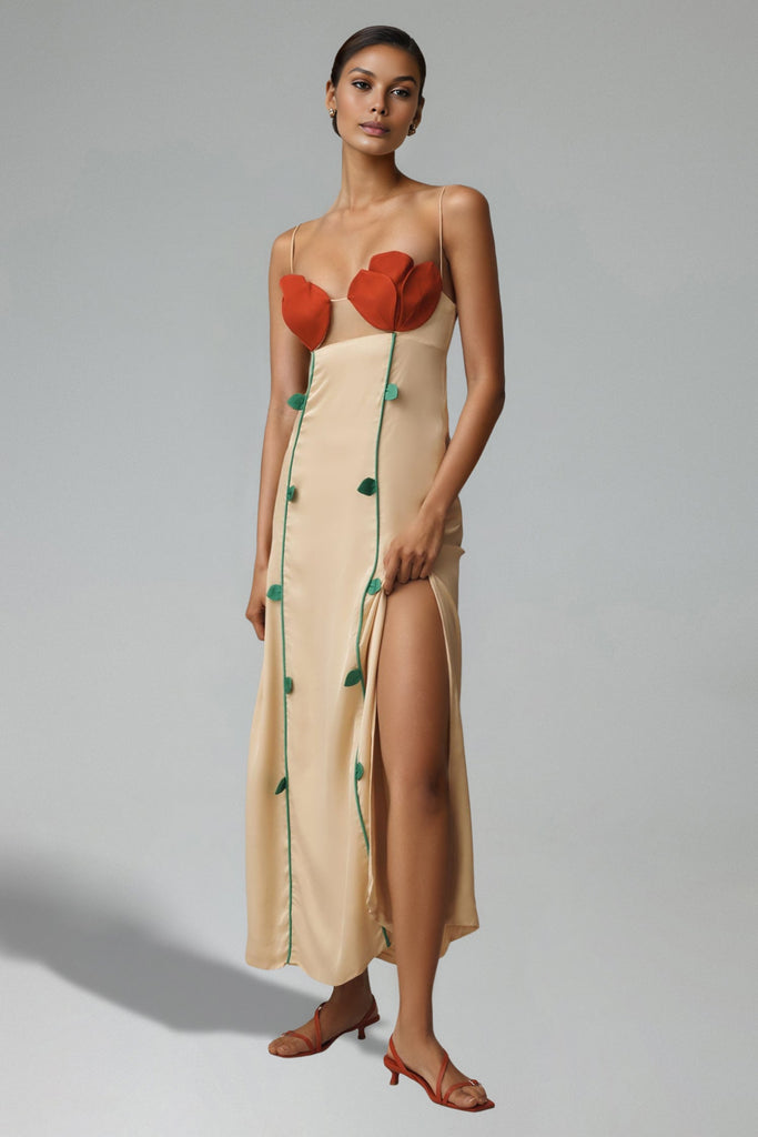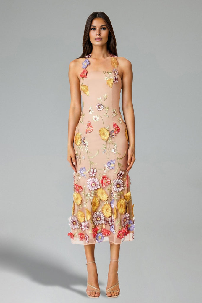 Abito midi senza spalline con fiori Tina