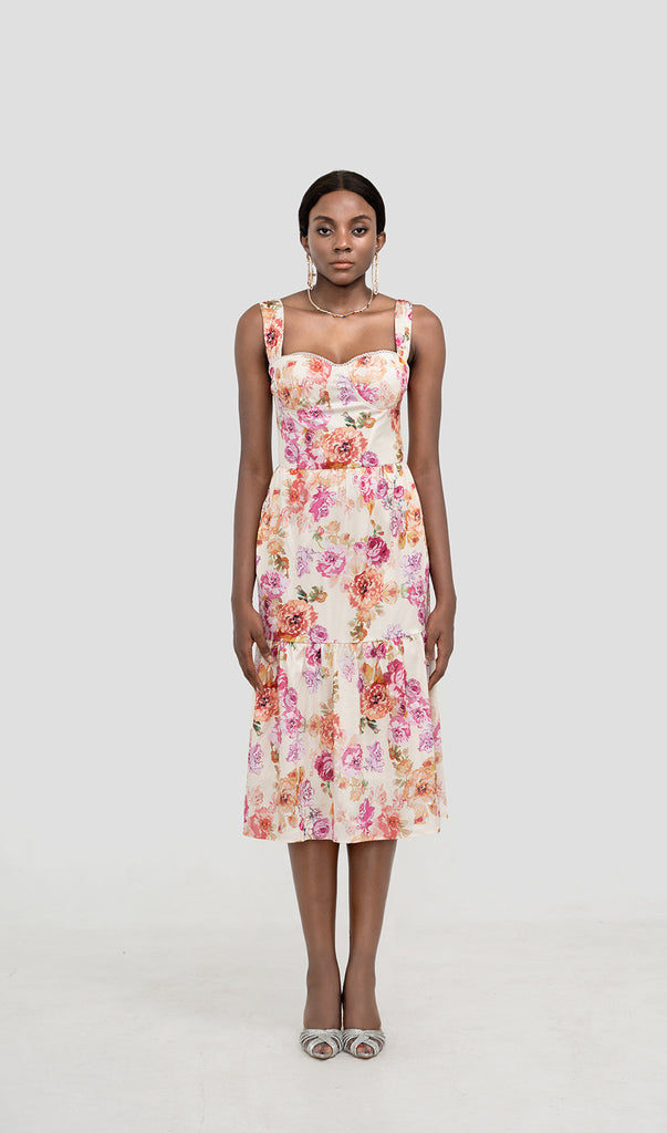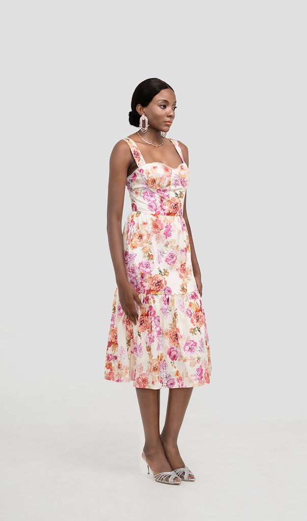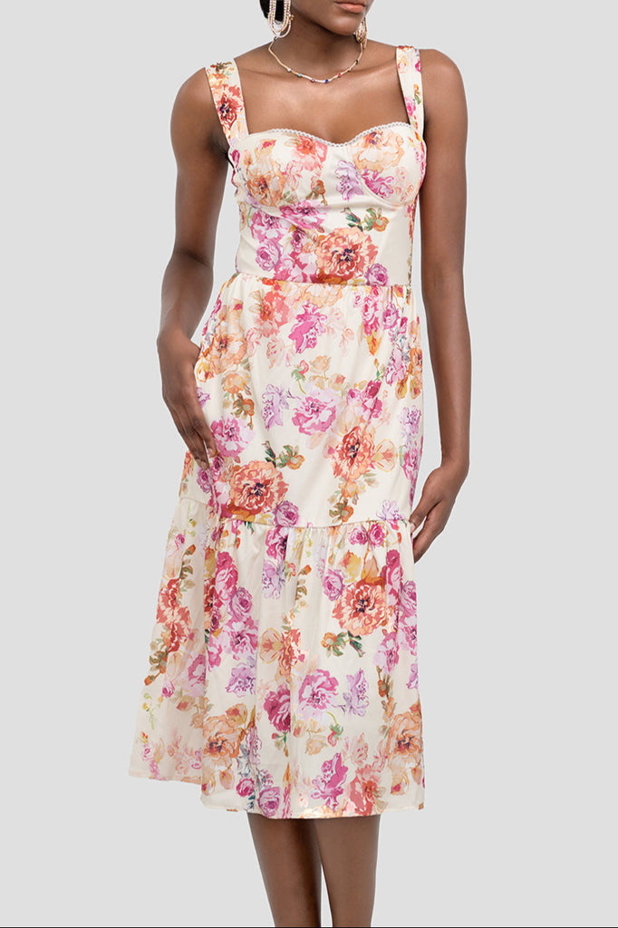 ABITO MIDI FLOREALE IN AVORIO – Wildnora.com