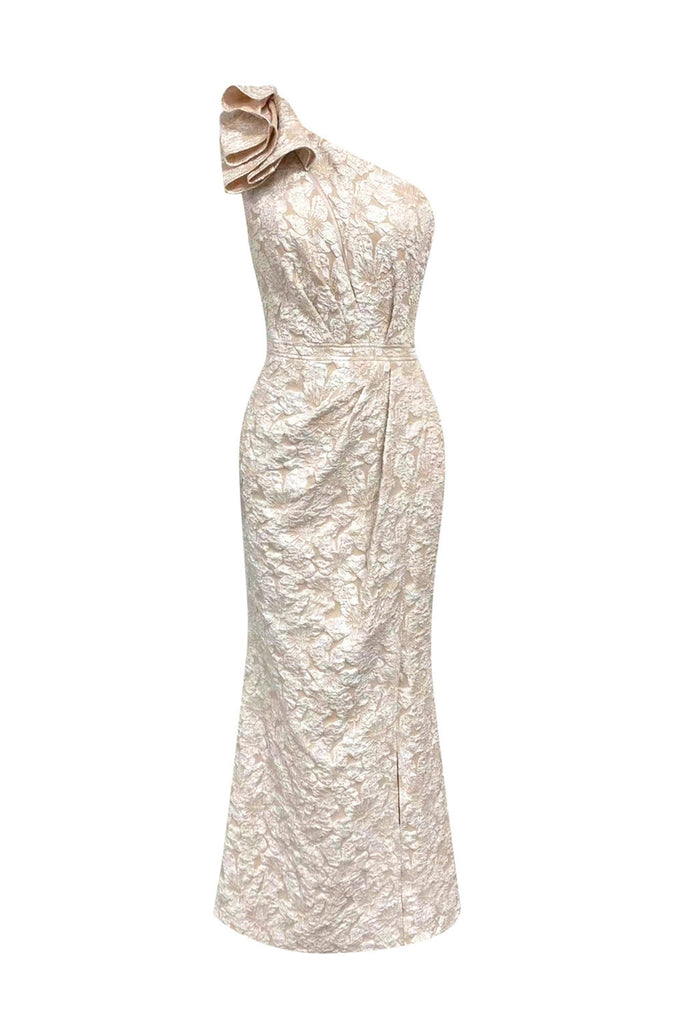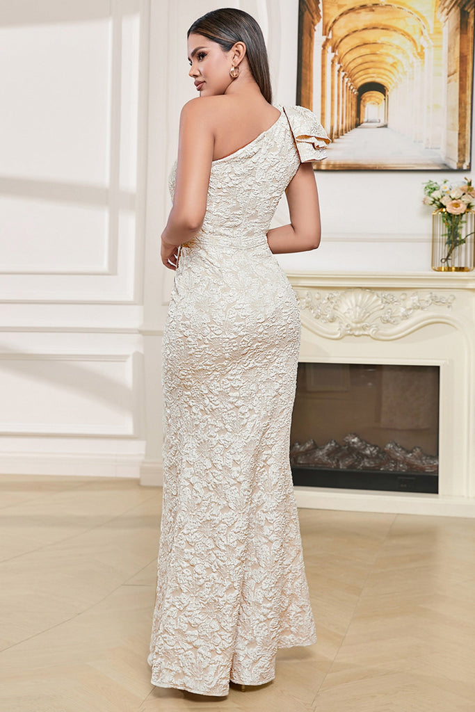 Questo abito lungo monospalla con fiocco floreale e spacco offre un design semplice ma elegante, perfetto per ogni occasione. Il suo esclusivo stile monospalla e l'orlo con spacco donano un tocco di raffinatezza e femminilità. Realizzato in tessuto morbido e leggero, questo abito promette comfort e stile.
