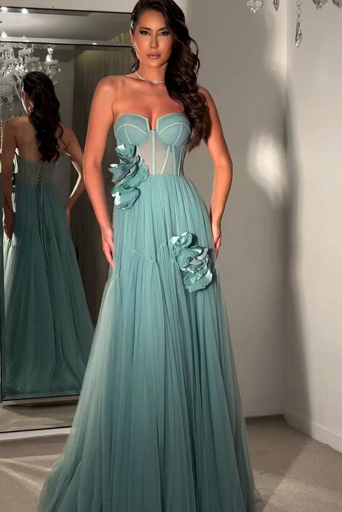 MINI ABITO IN RASO SENZA SPALLINE CON FLORE 3D