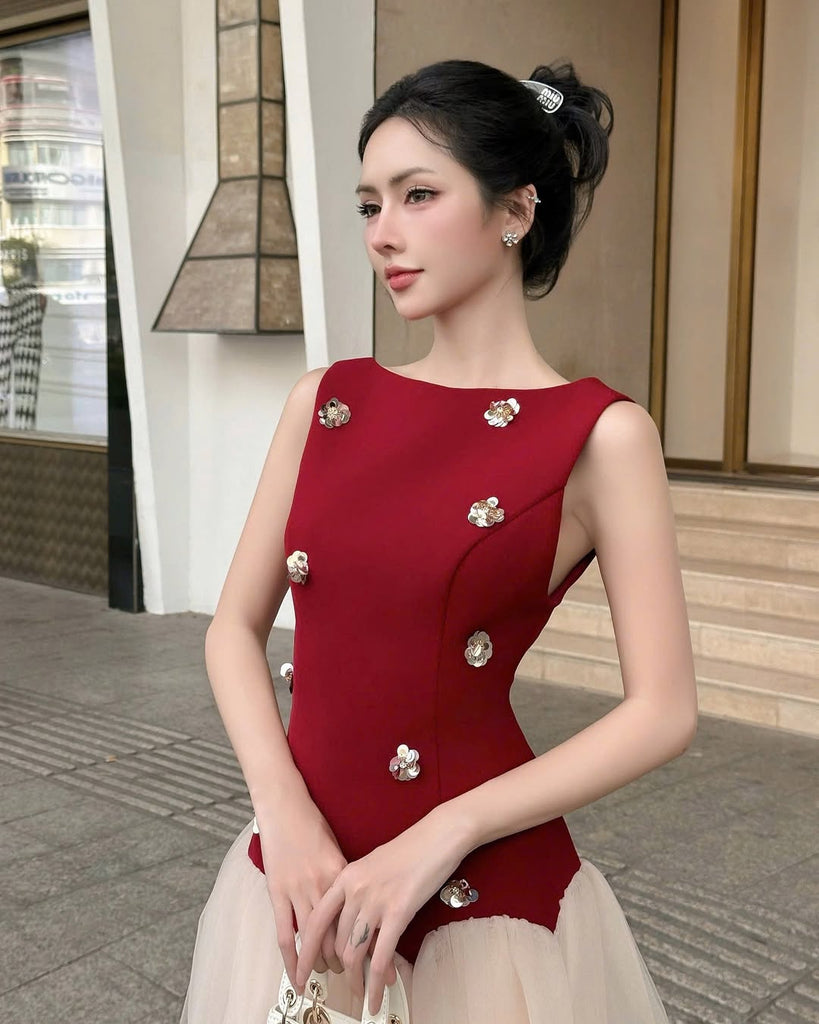 Esalta il tuo guardaroba con il mini abito in tulle patchwork con fiori 3D Beryl in rosso. Realizzato in delicato tulle, questo mini abito presenta un intricato patchwork floreale 3D, che aggiunge profondità e consistenza a una silhouette rossa vibrante. Progettato per esaltare la tua eleganza femminile, il suo tessuto leggero offre comfort senza rinunciare allo stile. Perfetto per le occasioni speciali, questo abito fonde arte e moda moderna per un look eccezionale.
