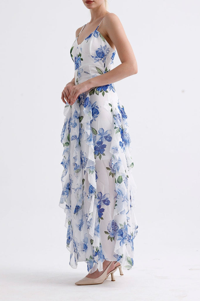 Realizzato in chiffon leggero, questo abito lungo floreale senza maniche è perfetto per ogni occasione. Il tessuto fluido lo rende comodo da indossare, mentre la stampa floreale aggiunge un tocco di eleganza. Un must-have per chi ama la moda.
