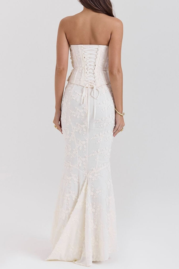 Questo abito lungo a sirena con stampa floreale, disponibile in bianco, è una splendida aggiunta a qualsiasi guardaroba. La silhouette a sirena offre una vestibilità perfetta, mentre la delicata stampa floreale aggiunge un tocco di eleganza. Realizzato con materiali di alta qualità, questo abito è perfetto per qualsiasi occasione formale o speciale.