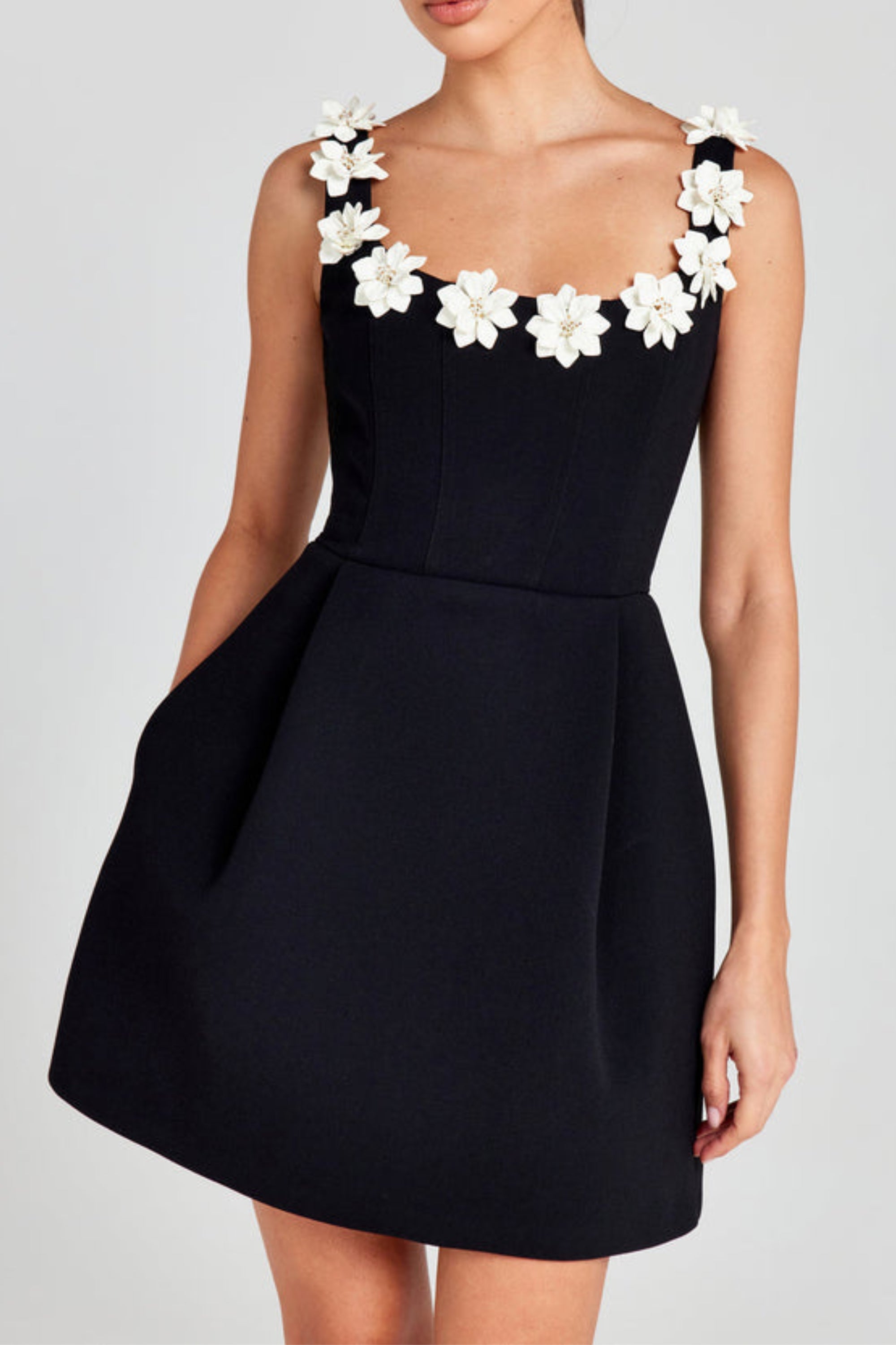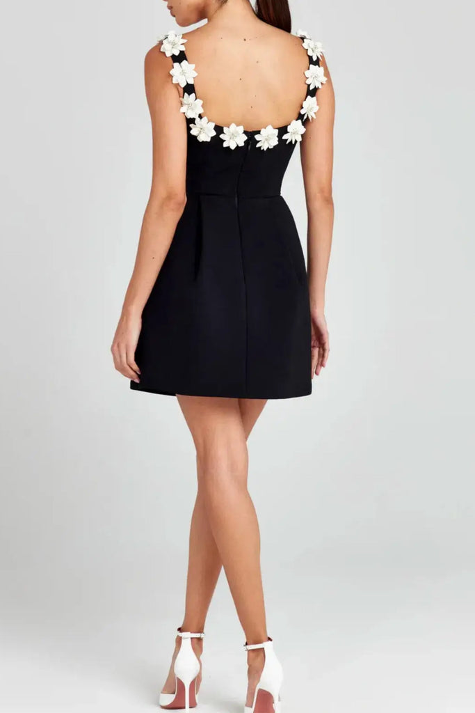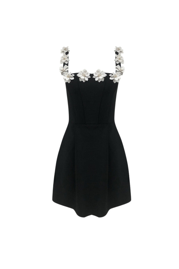 ゼノビアフラワー装飾ブラックミニドレス – Wildnora.com