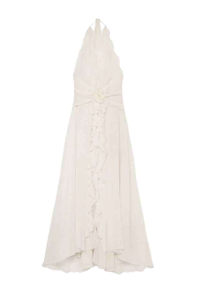 Aonaver フローラルフリルホルターネックマキシドレス - ホワイト – Wildnora.com
