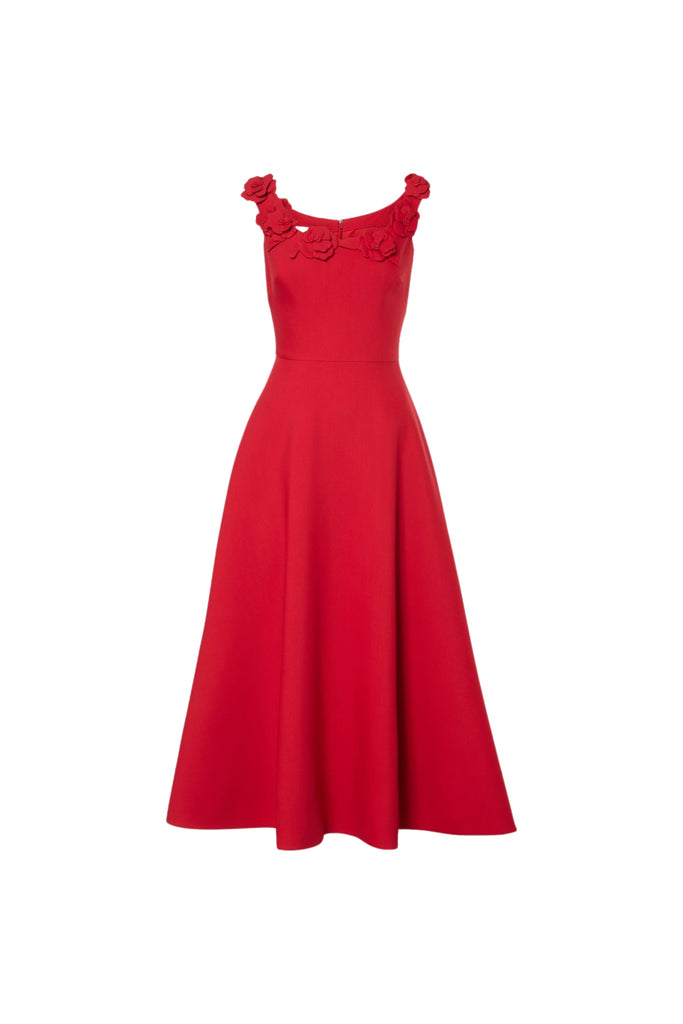 ULA 装飾花柄ラウンドネックミディドレス(レッド) – Wildnora.com