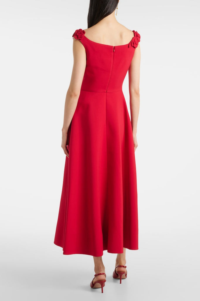 ULA 装飾花柄ラウンドネックミディドレス(レッド)