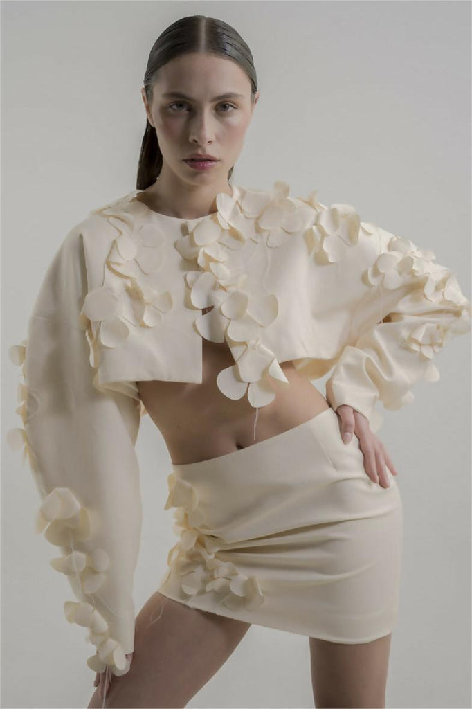 3Dフローラルロングスリーブトップスとハイウエスト3Dフローラルミニスカートのセットで、ファッションセンスをワンランクアップさせましょう。繊細な花柄のディテールと美しいハイウエストが特徴のこのセットは、スタイリッシュに着こなすのに最適です。高品質素材を使用し、快適でスタイリッシュなフィット感を実現しています。