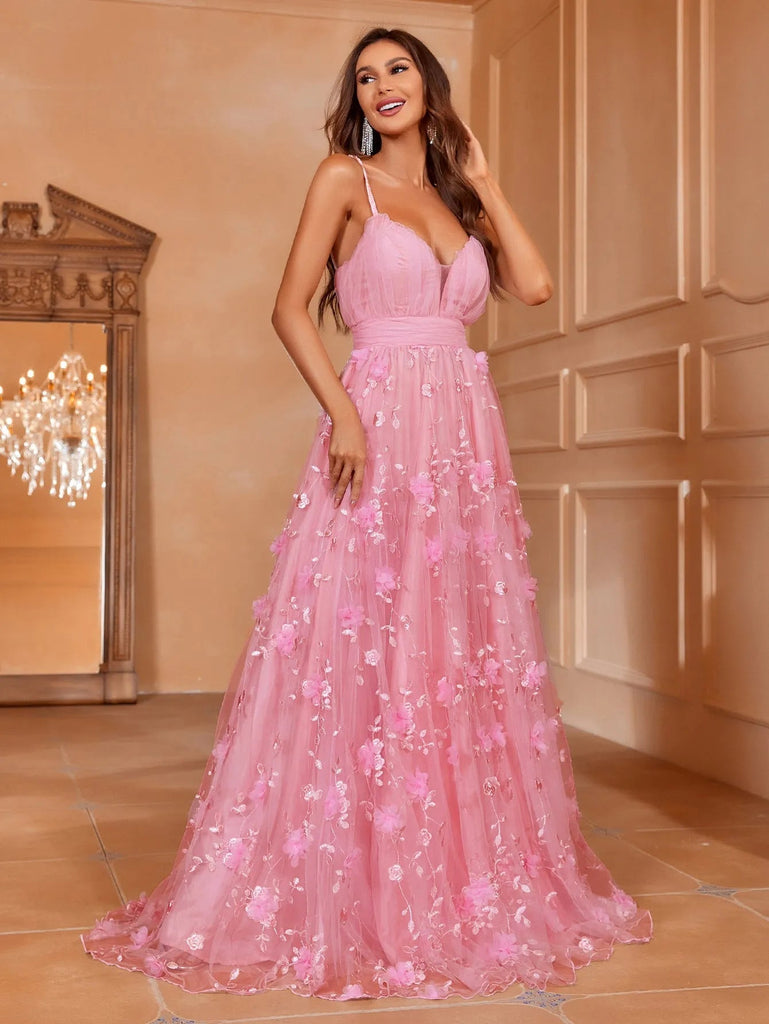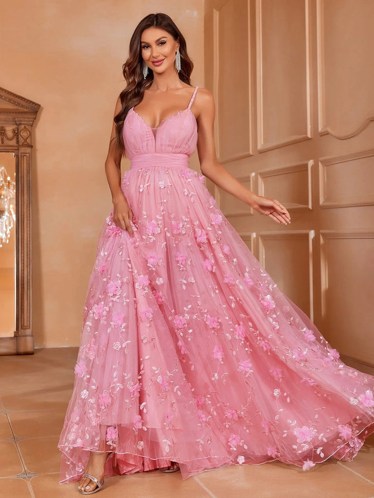 この魅惑的なガウンは、まさにエレガンスと遊び心を兼ね備えています。贅沢なライラック色のこのドレスは、深いスウィートハートネックラインと繊細なスパゲッティストラップが優雅なローバックラインを描きます。体にフィットするボディスから、ボリュームのあるフロア丈のチュールスカートへと優しく移り変わり、繊細な花のアップリケとスパンコールがシルエットを伝い落ち、幻想的な雰囲気を醸し出します。洗練された雰囲気とおとぎ話のような魅力が融合したこのドレスは、ガラやプロムにぴったり。どんな入場シーンも忘れられない思い出となるでしょう。