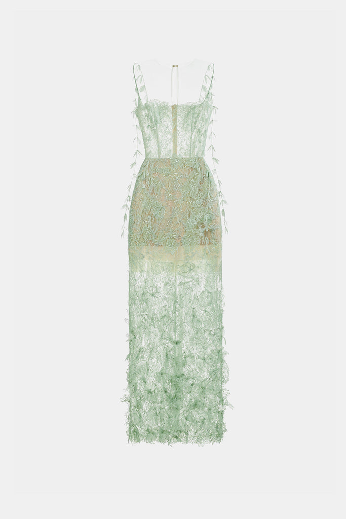 ミントビーズレースペンシルドレスは、フォーマルな場面に最適な魅力的な衣服です。