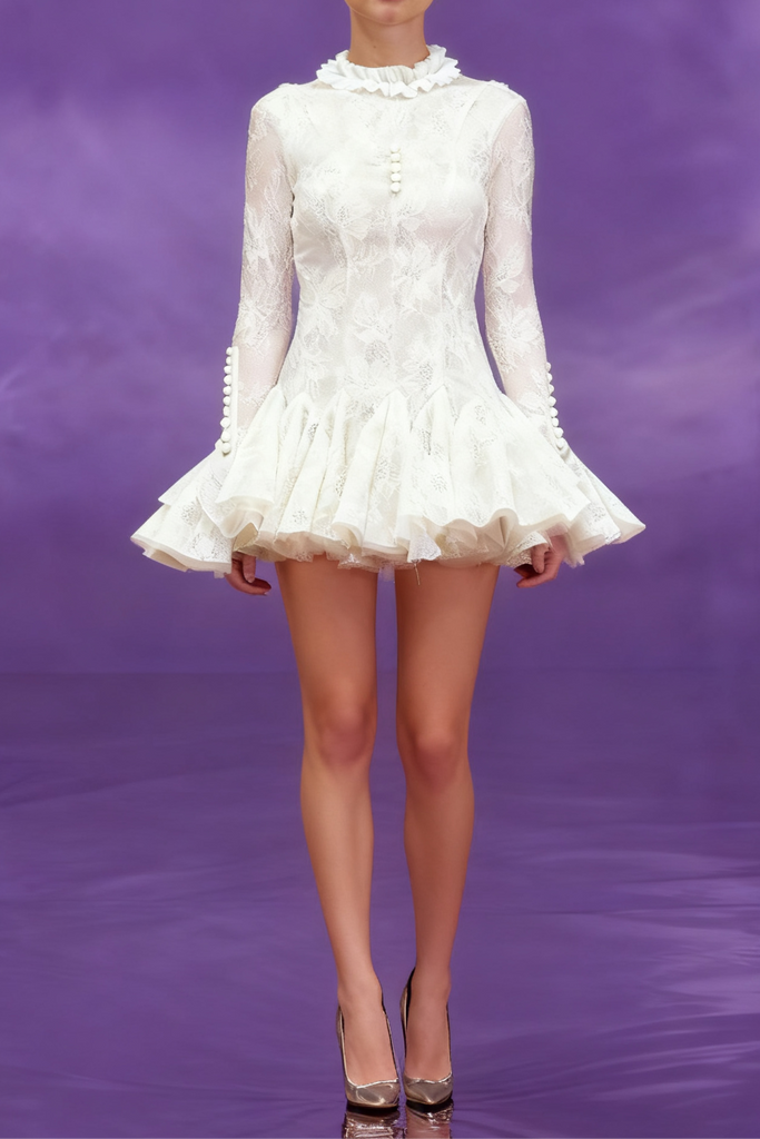 レースカラーフローラルプリントアシンメトリーヘムドレス