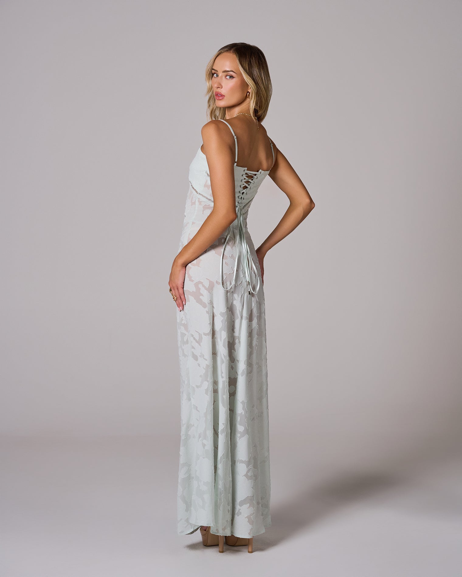 Seniは単なるドレスではありません。ロマンチックな魅力と時代を超越した美しさを体現し、あらゆる特別な機会を忘れられないものにするためにデザインされています。コルセット風のレースアップバックと透け感のあるジャカード生地が特徴のSeniは、ヴィンテージの魅力と現代的な洗練さを兼ね備えた傑作です。