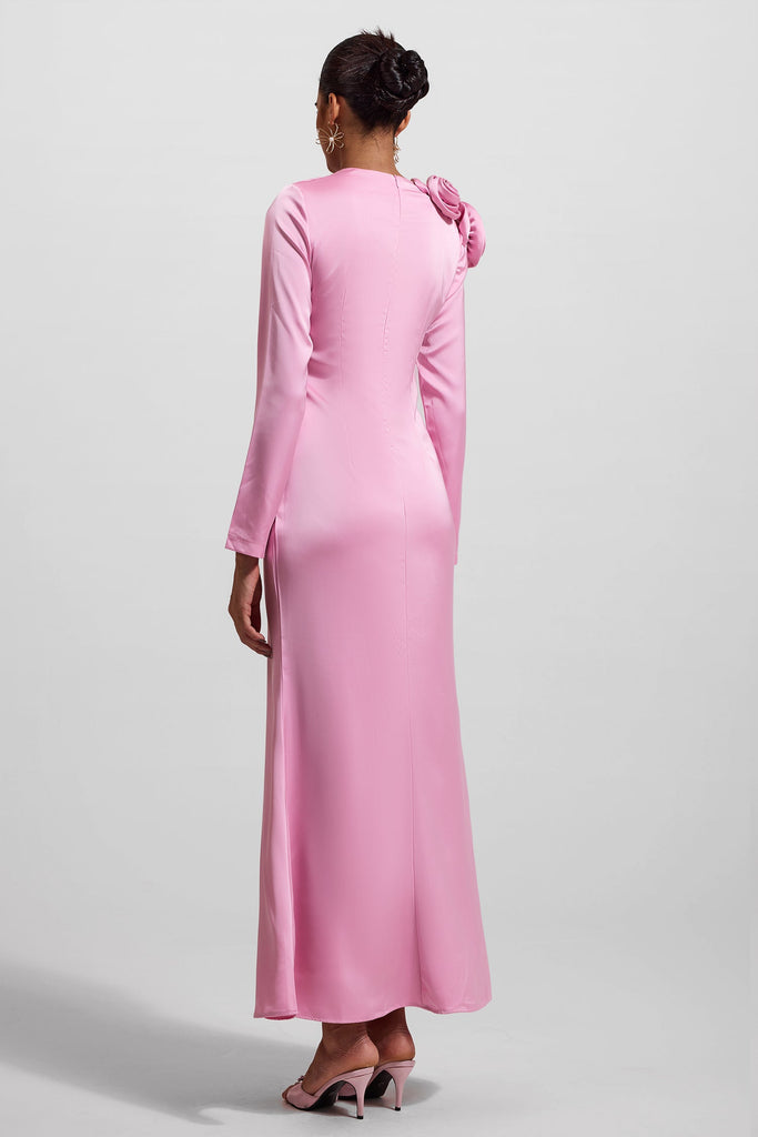 洗練されたシルエットに仕立てられた、3Dフローラルサテンロングスリーブミディドレスで、ワードローブをワンランクアップさせましょう。滑らかなサテン生地に繊細な立体的な花柄をあしらったこのドレスは、質感と繊細な光沢が絶妙に調和しています。長袖とミディ丈が、フォーマルなシーンにも洗練されたデイタイムのイベントにもぴったりな、バランスの取れたエレガントなルックを演出します。テーラードフィットが快適さと優雅さを両立し、万能でタイムレスなコレクションに欠かせない一枚です。