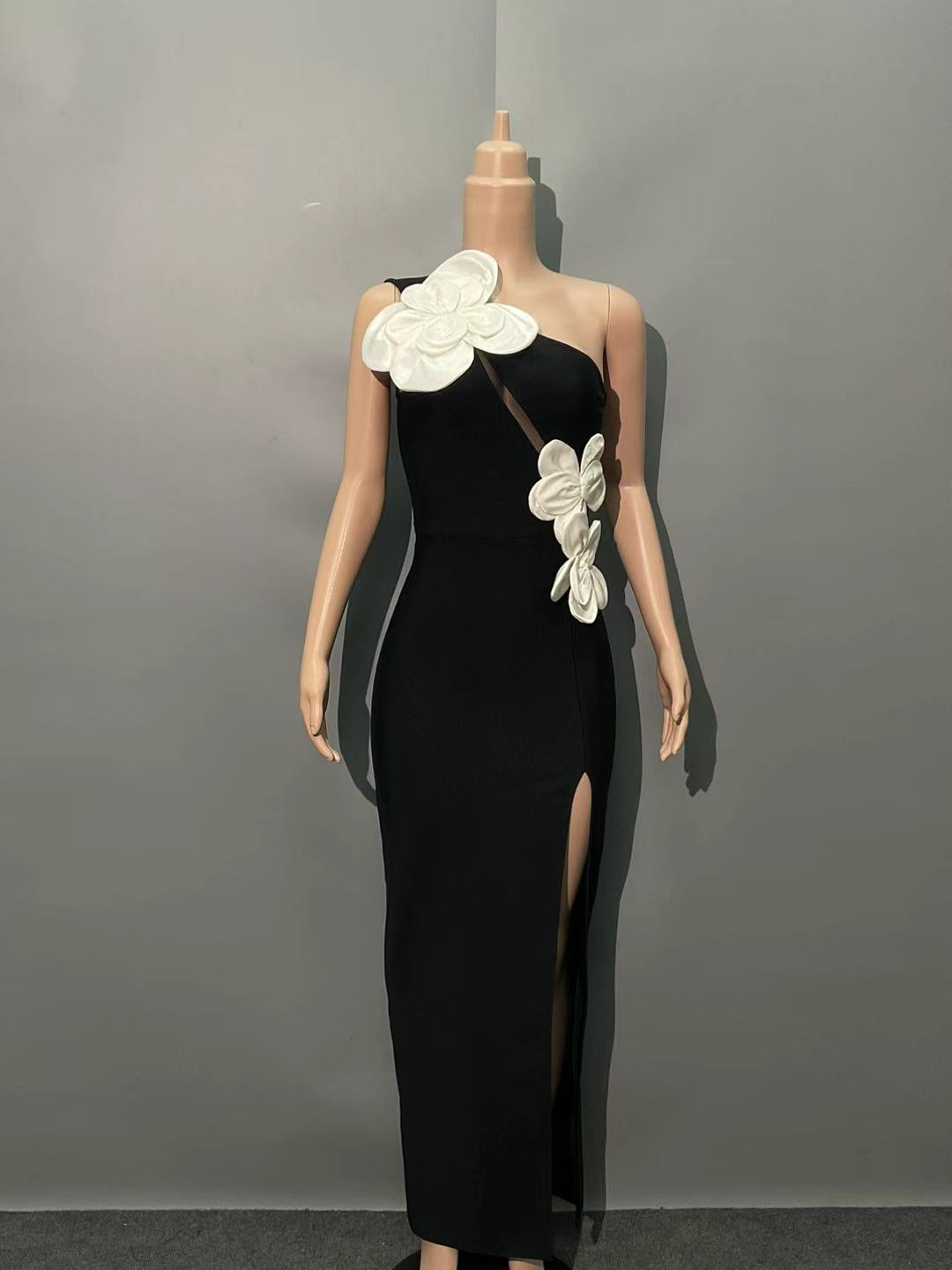 ブラックのヘロイーズフラワースリットワンショルダーバンデージマキシドレスで、ワードローブをワンランクアップさせましょう。この熟練の職人が仕立てたドレスは、体のラインに沿って滑らかにフィットするバンデージフィット、モダンなエッジを効かせたスタイリッシュなワンショルダーネックライン、そして動きと魅力を添える上品なスリットが特徴です。エレガントな花柄が洗練された魅力を高め、フォーマルなイベントやワンランク上の夜会に最適です。快適な着心地と存在感のあるデザインが融合したこのマキシドレスは、自信に満ちた洗練されたルックスを演出します。