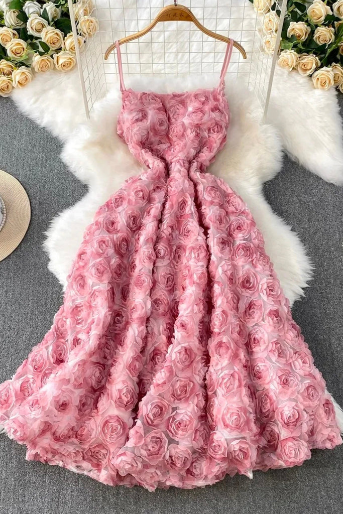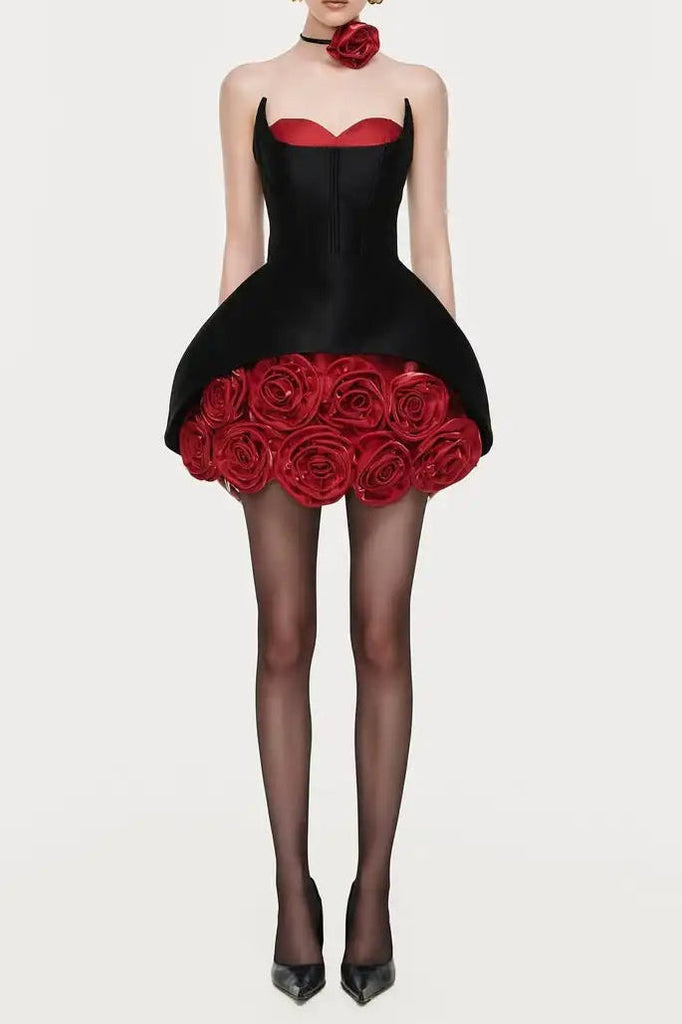 ローズフラワーフリル花柄ミニドレス(レッド)