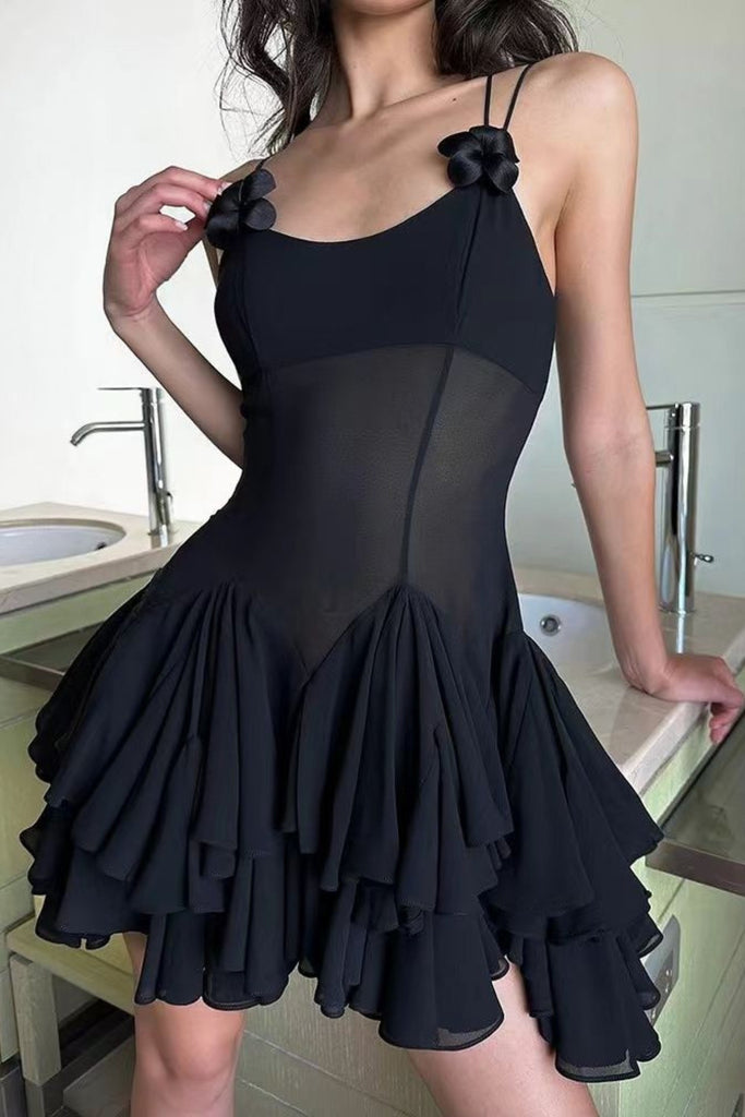 ライクラの花柄ミニドレス(ブラック)