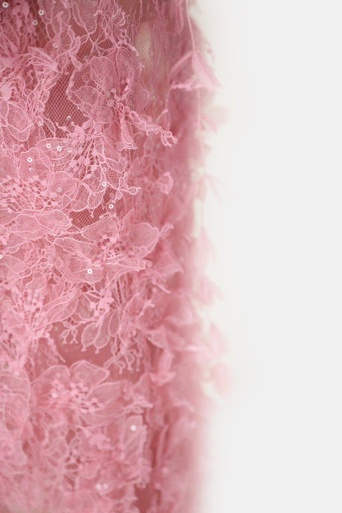 ピンクのビーズレースペンシルドレスは、フォーマルな場面に最適な美しい衣服です。