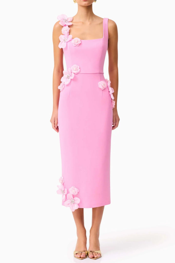 サブリナ 3Dフラワー ミディドレス(ピンク)