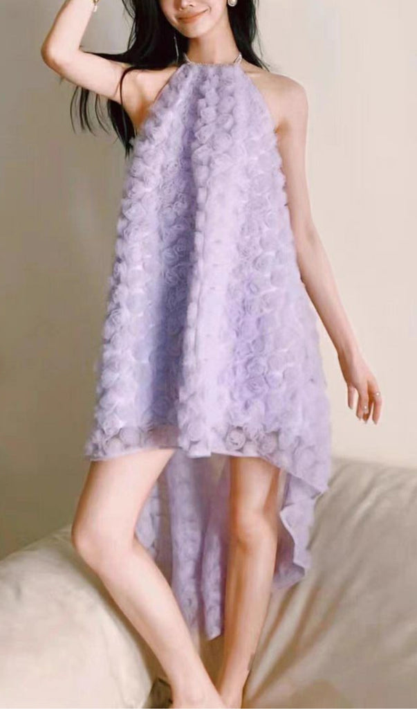 この3Dパープルローズホルターネックバックレスミディドレスで、極上のスタイルを演出しましょう!エレガントなデザインで注目を集めること間違いなし。どんな特別な日にもぴったりのワードローブです。頬にバラを添えて、スタイリッシュにお出かけください!