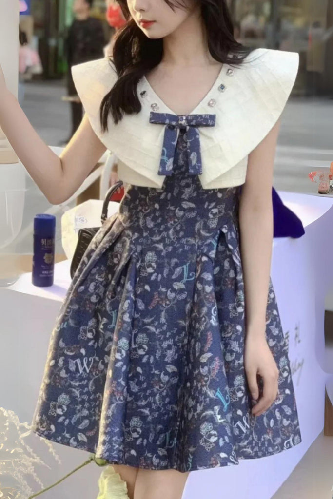 ブルーリボン スイートハート ウエストバンド ノースリーブ フローラル ミニドレス – Wildnora.com