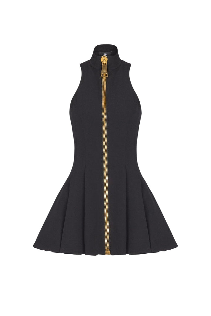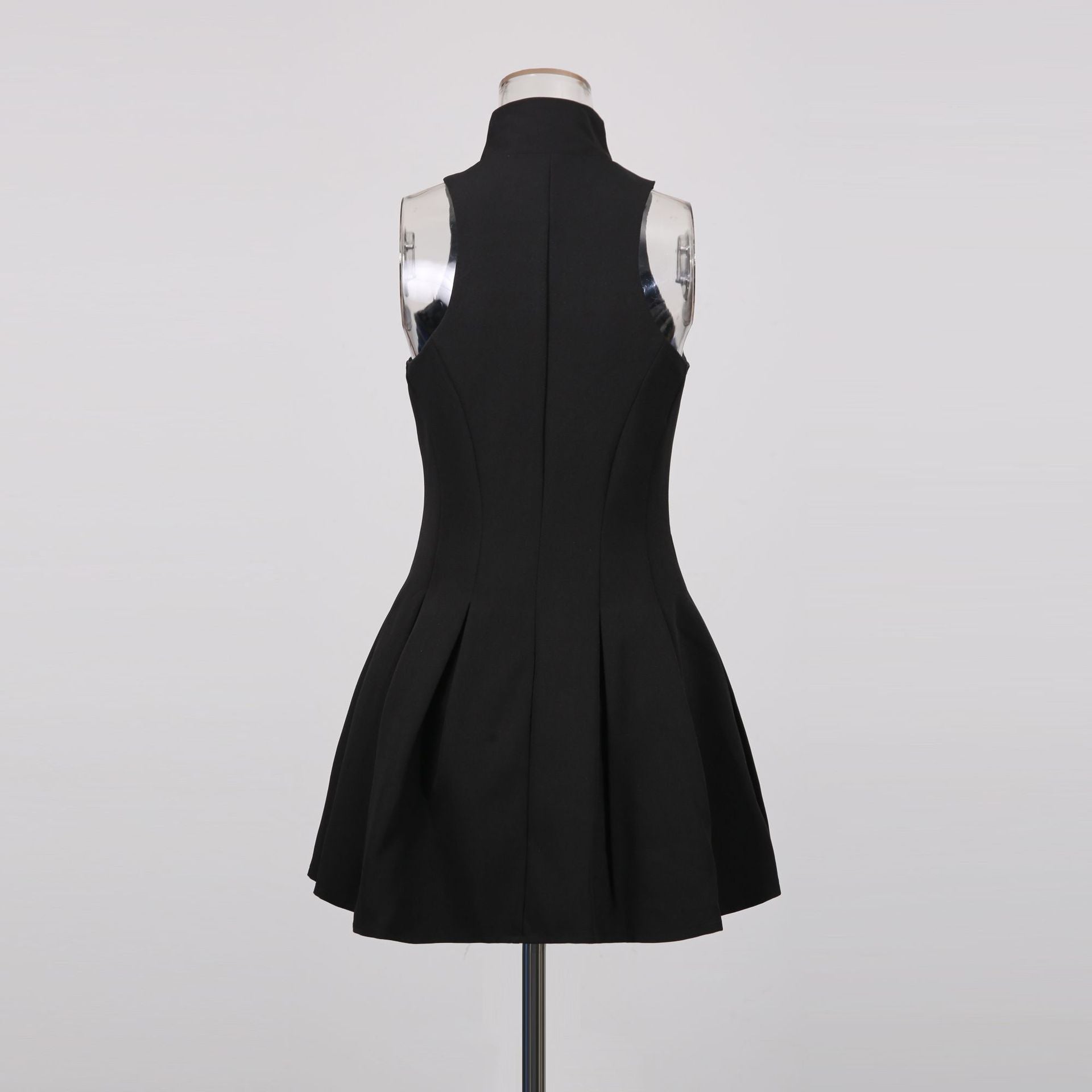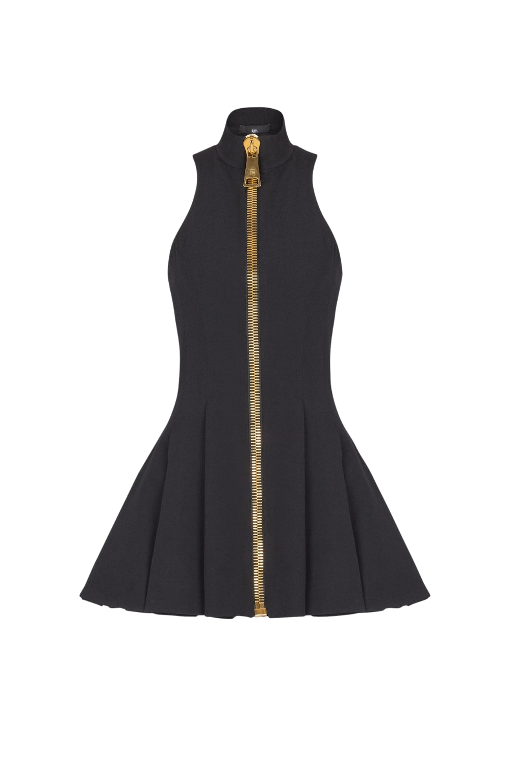 グレイン・ド・プードルウールのキャロル ブラック ホルターネック ドレス – Wildnora.com