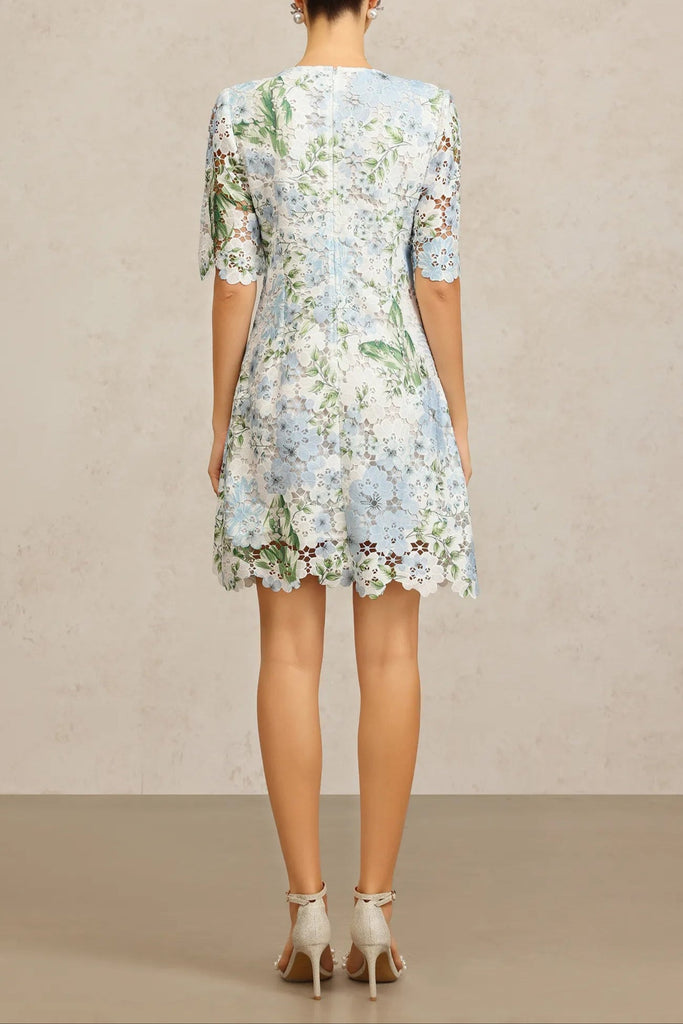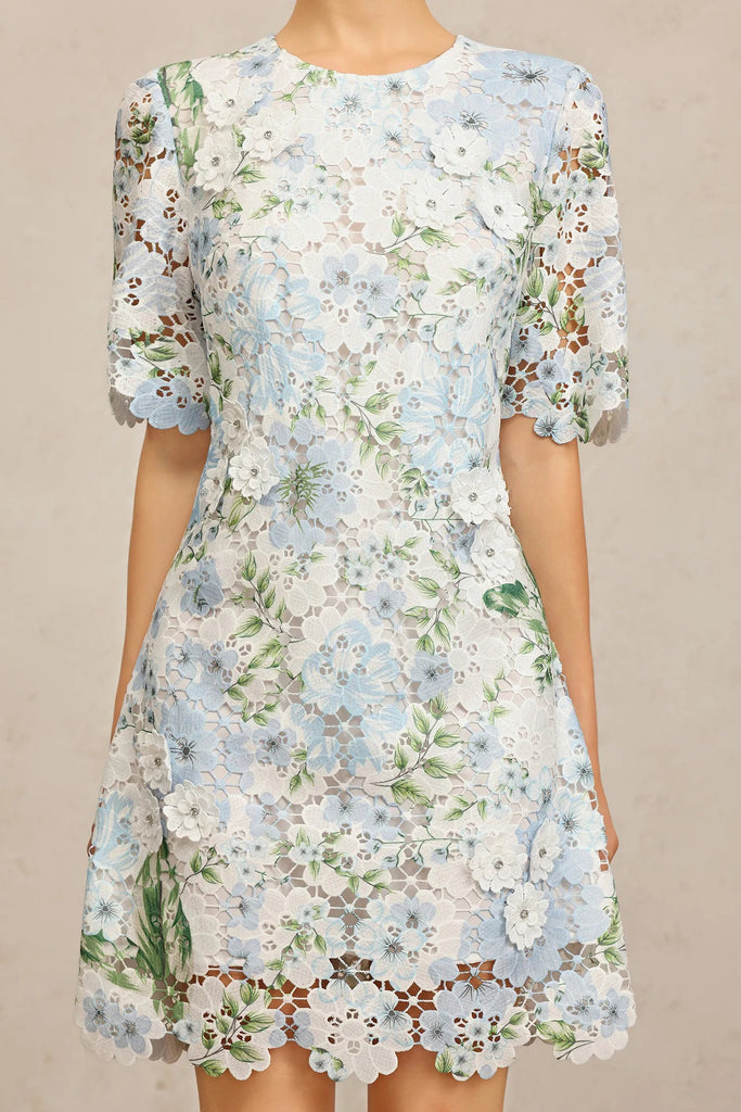 ヘーゼルの花柄プリントレースミニドレス(スカイブルー) – Wildnora.com