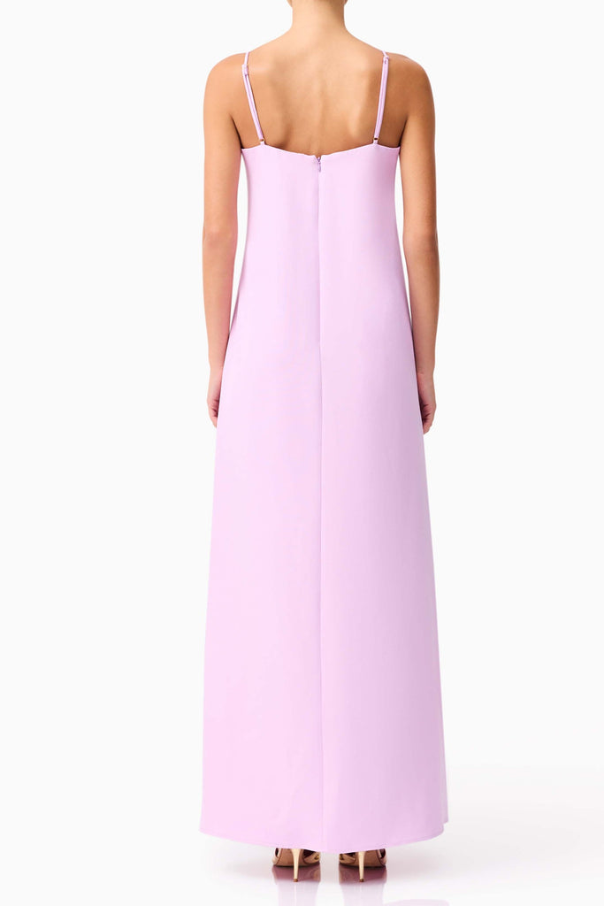 パープルのバターカップ刺繍マキシドレスは、目立つ機会に大胆でありながらフェミニンな外観を求める方に最適です。