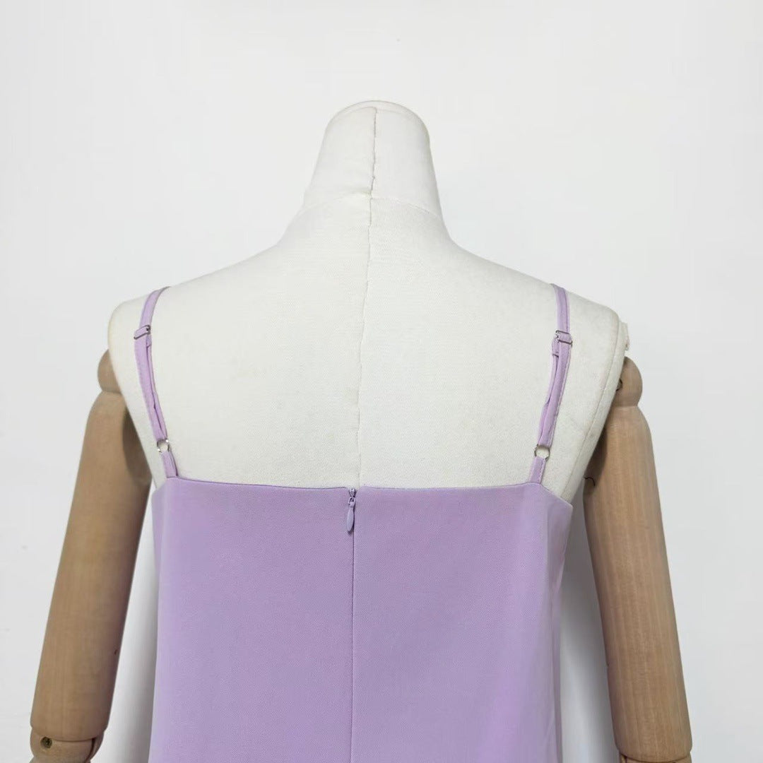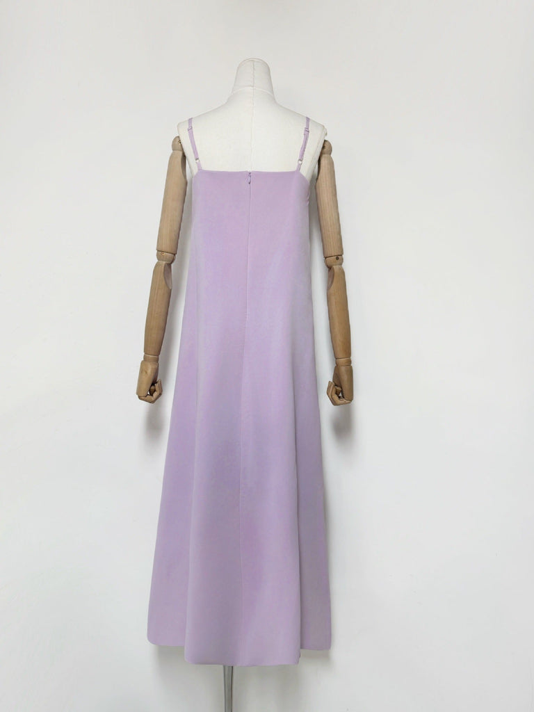 調節可能なショルダーストラップで、昼夜を問わず、しっかりとしたフィット感と快適な着心地を実現。床に落ちるシルエットは自然で、背面中央のコンシールファスナーが滑らかで洗練された印象を与えます。