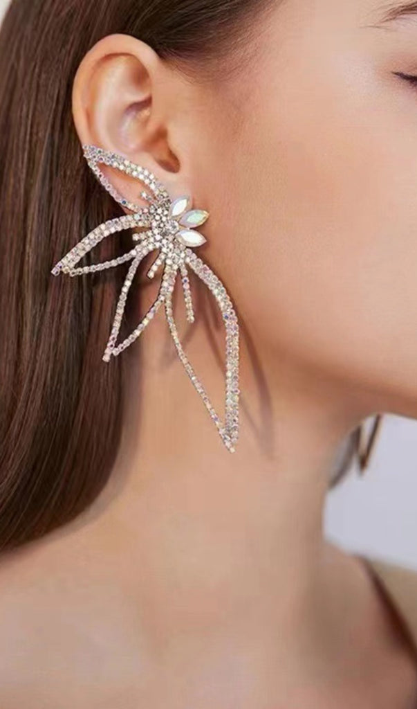 CRYSTAL FLOWER EARRINGS IN SILVER – Wildnora.com