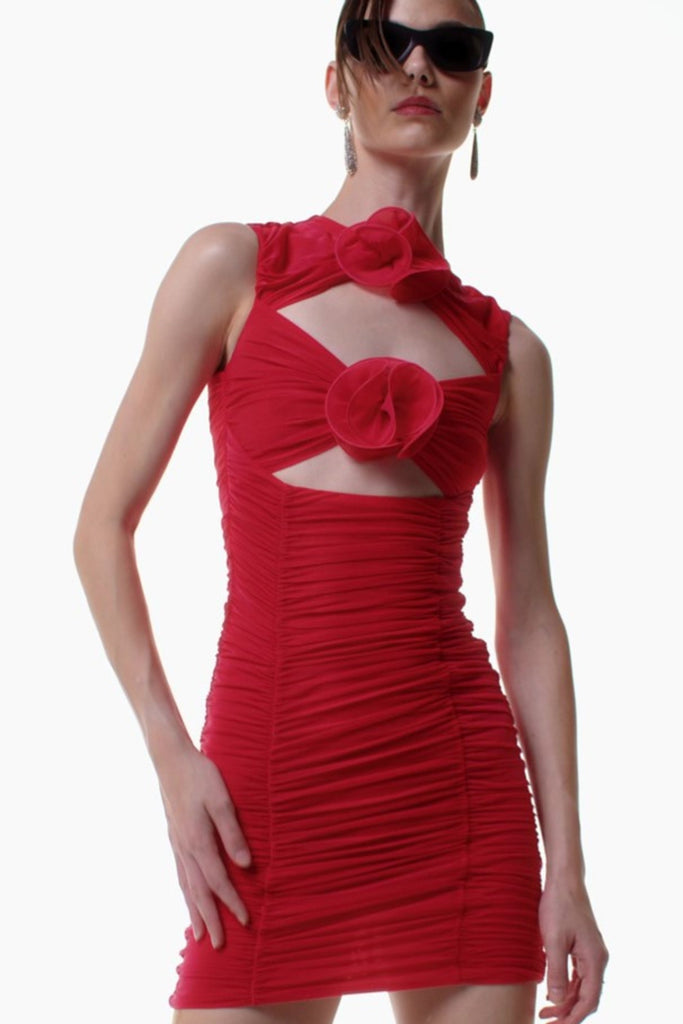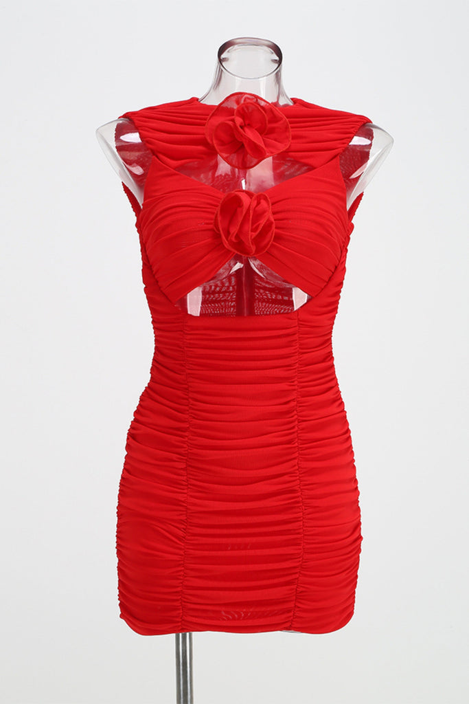 Step out in style with our Cutout Floral Mini Dresses in red. These elegant dresses feature intricate floral cutouts, adding a touch of femininity to your look. Made with high-quality fabric, they provide a comfortable fit while making a bold fashion statement. Perfect for any occasion, these dresses are a must-have for your wardrobe.