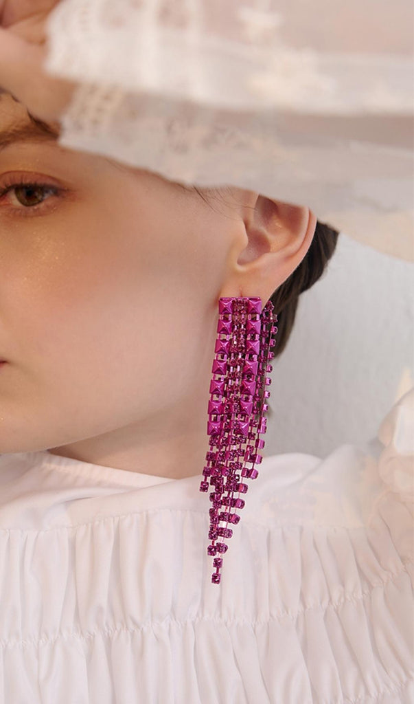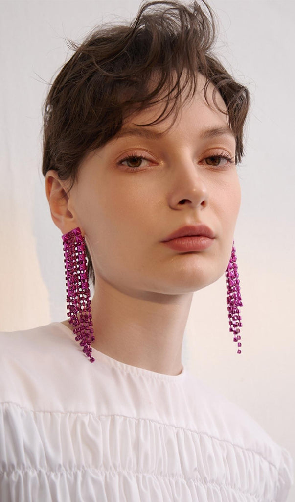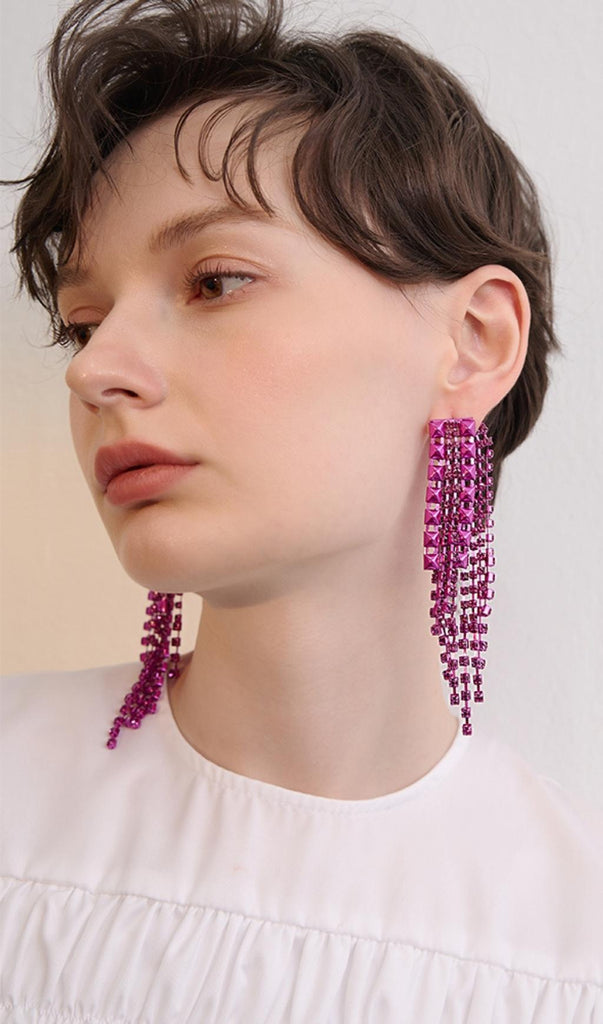 DARK VIOLET RHINESTONE TASSEL EARRINGS