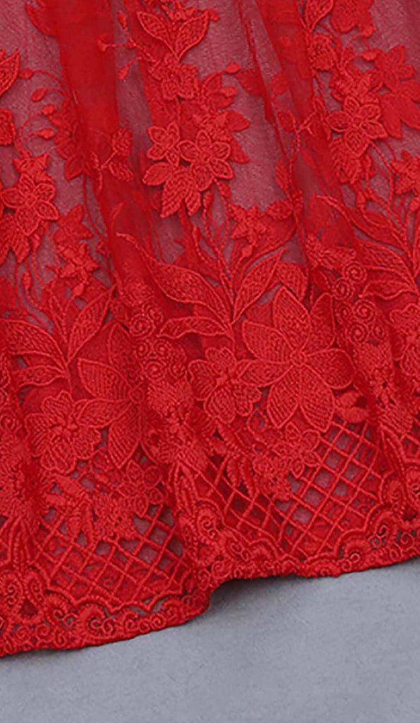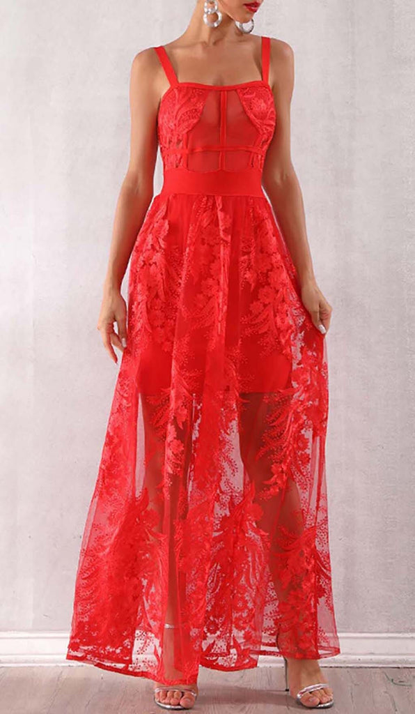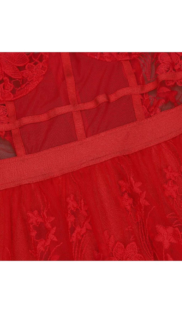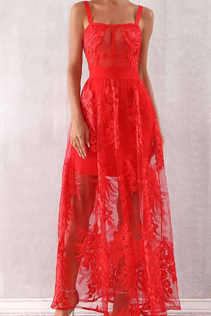 Claim Your Crown Wearing This Romantic Floral Corset Lace Maxi Dress in Ravishing Red. A Structured Corset Bodice Festooned With Embroidered Floral Appliqués Sculpts an Enviable Figure. The Sweetheart Neckline Complements Your Décolletage While The