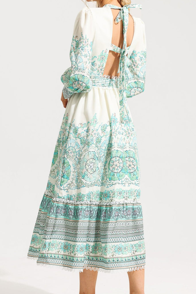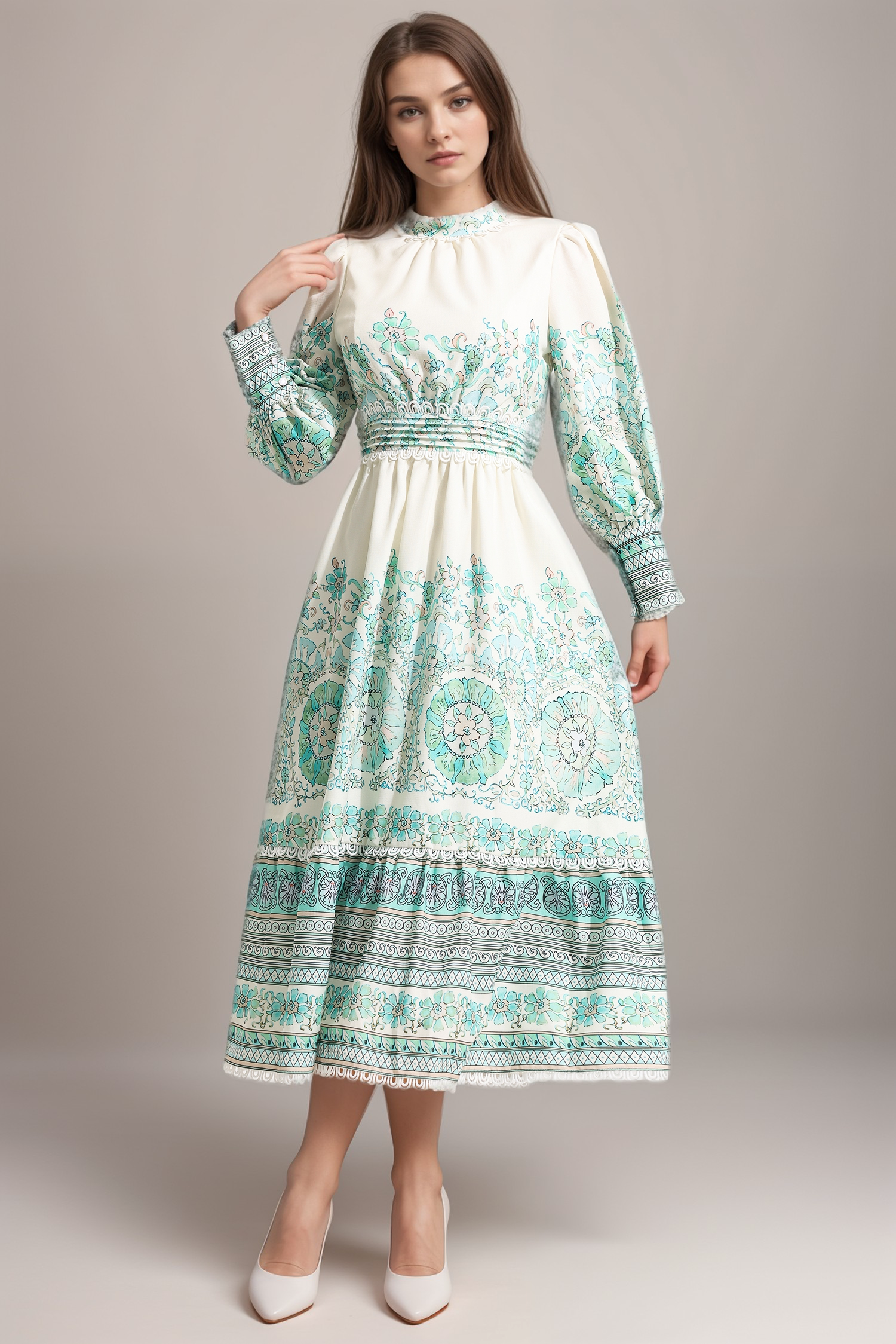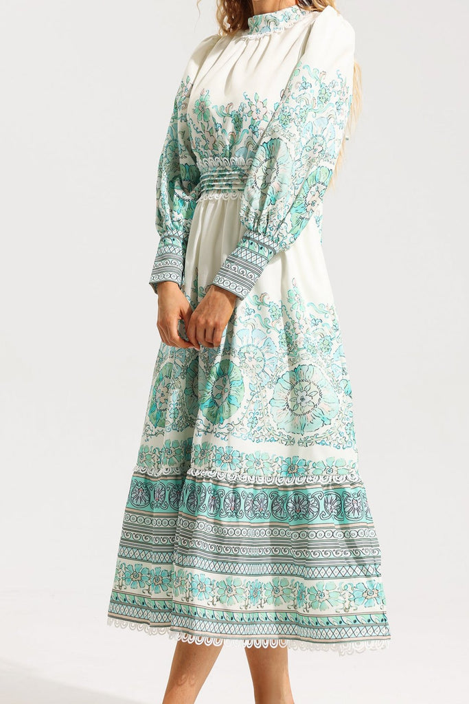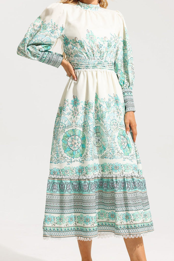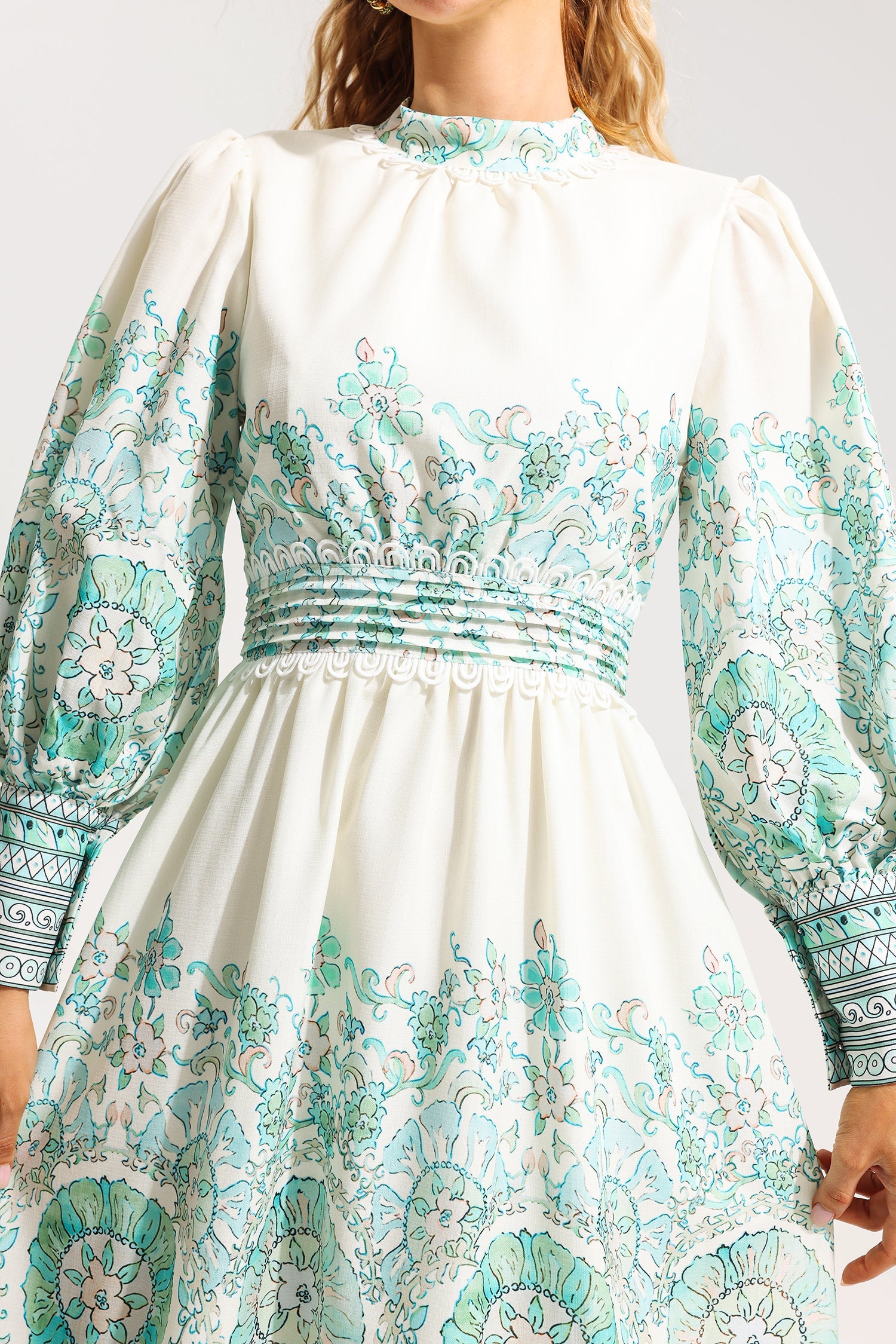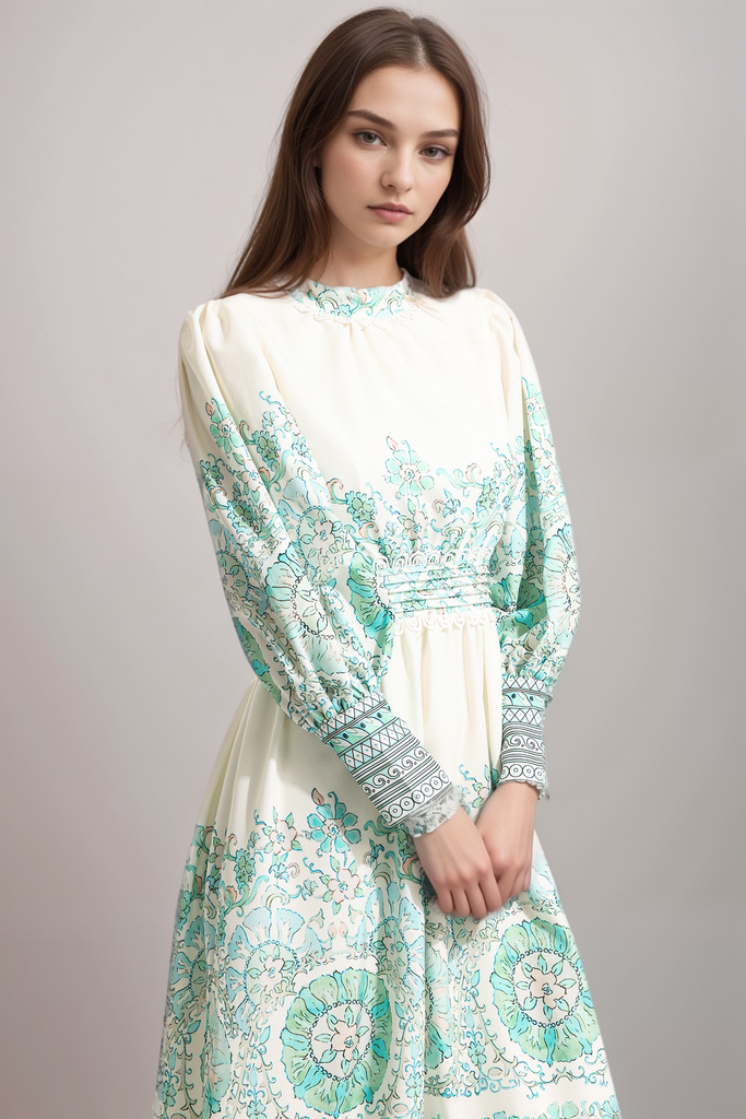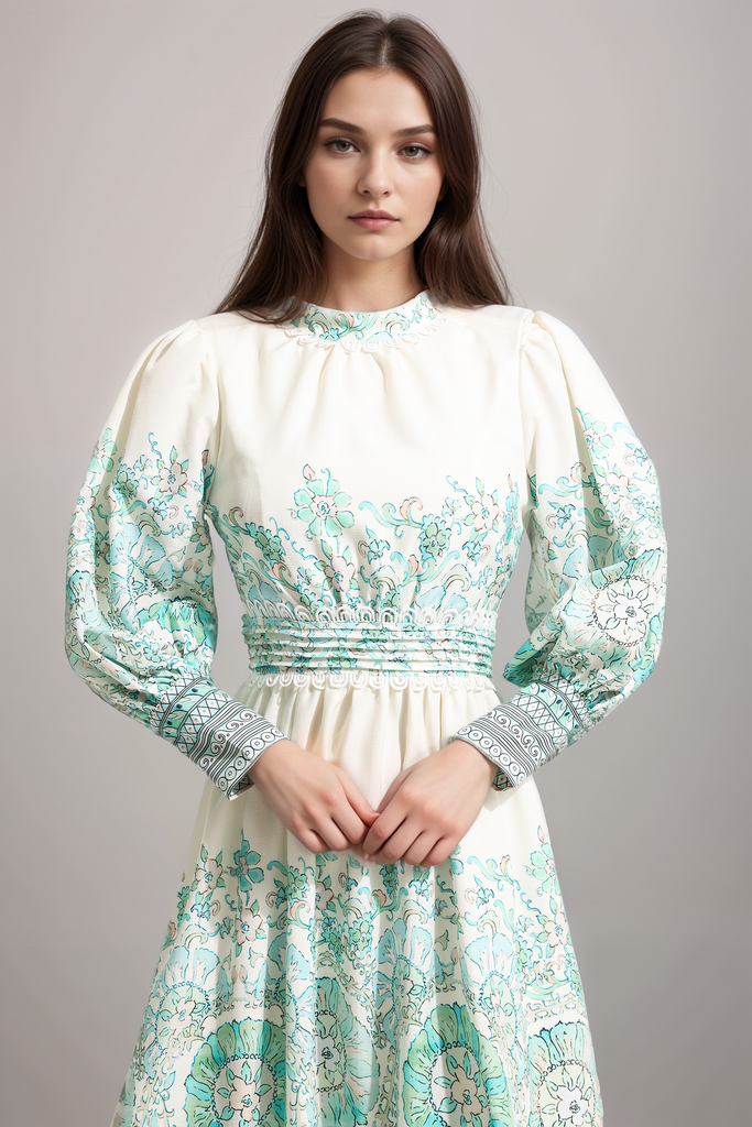 - Floral, lantern sleeve, pleated